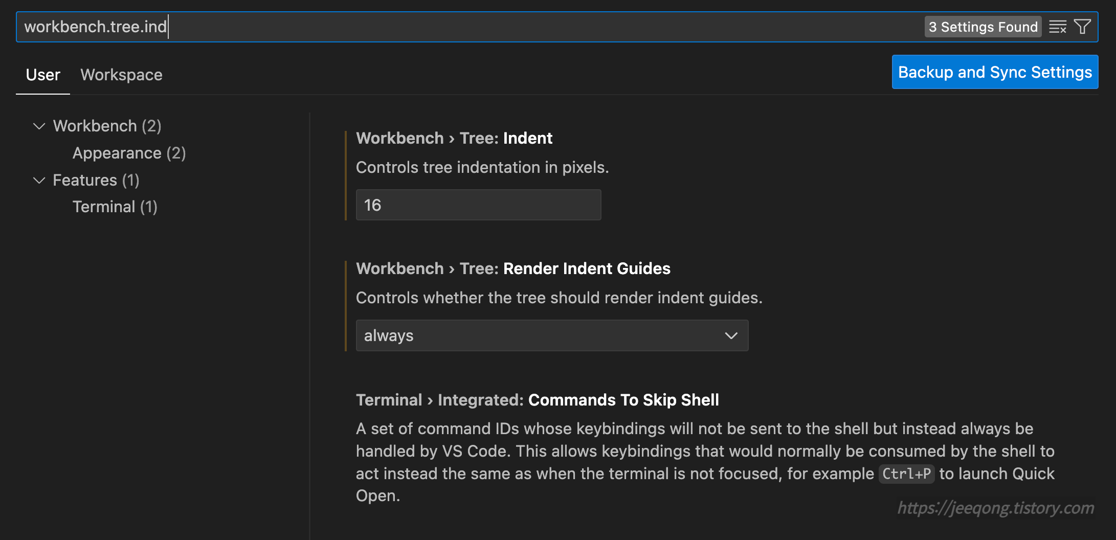 1. 설정열기 + workbench.tree.ind 검색하기
