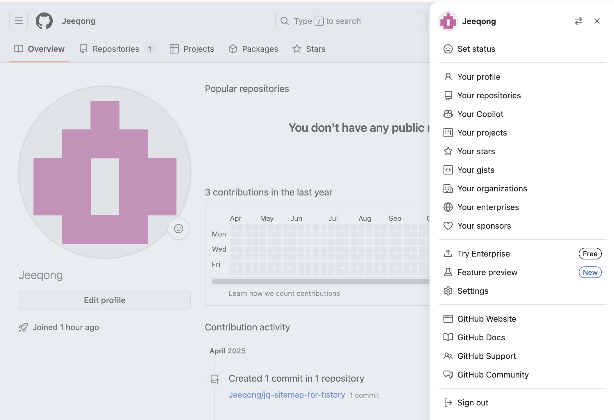 5.2 GitHub → Settings → SSH and GPG keys 메뉴 클릭