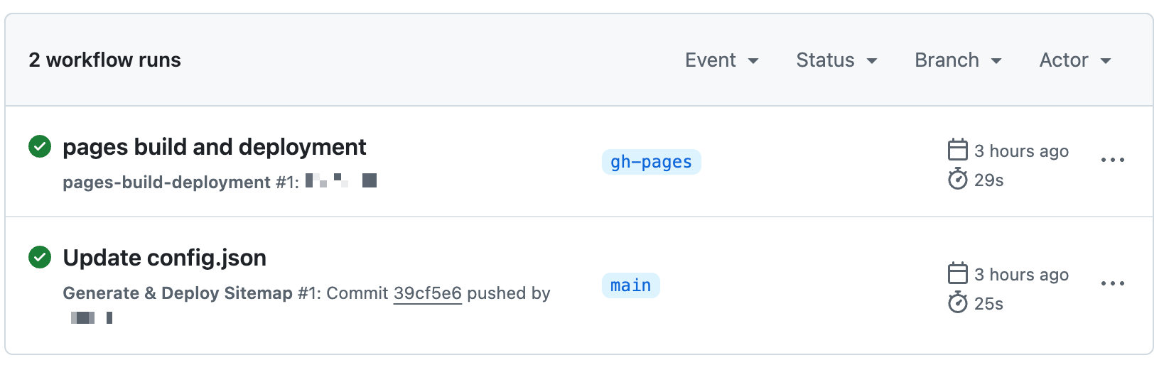 워크플로우가 성공적으로 실행되면 gh-pages 브랜치가 생성되고,