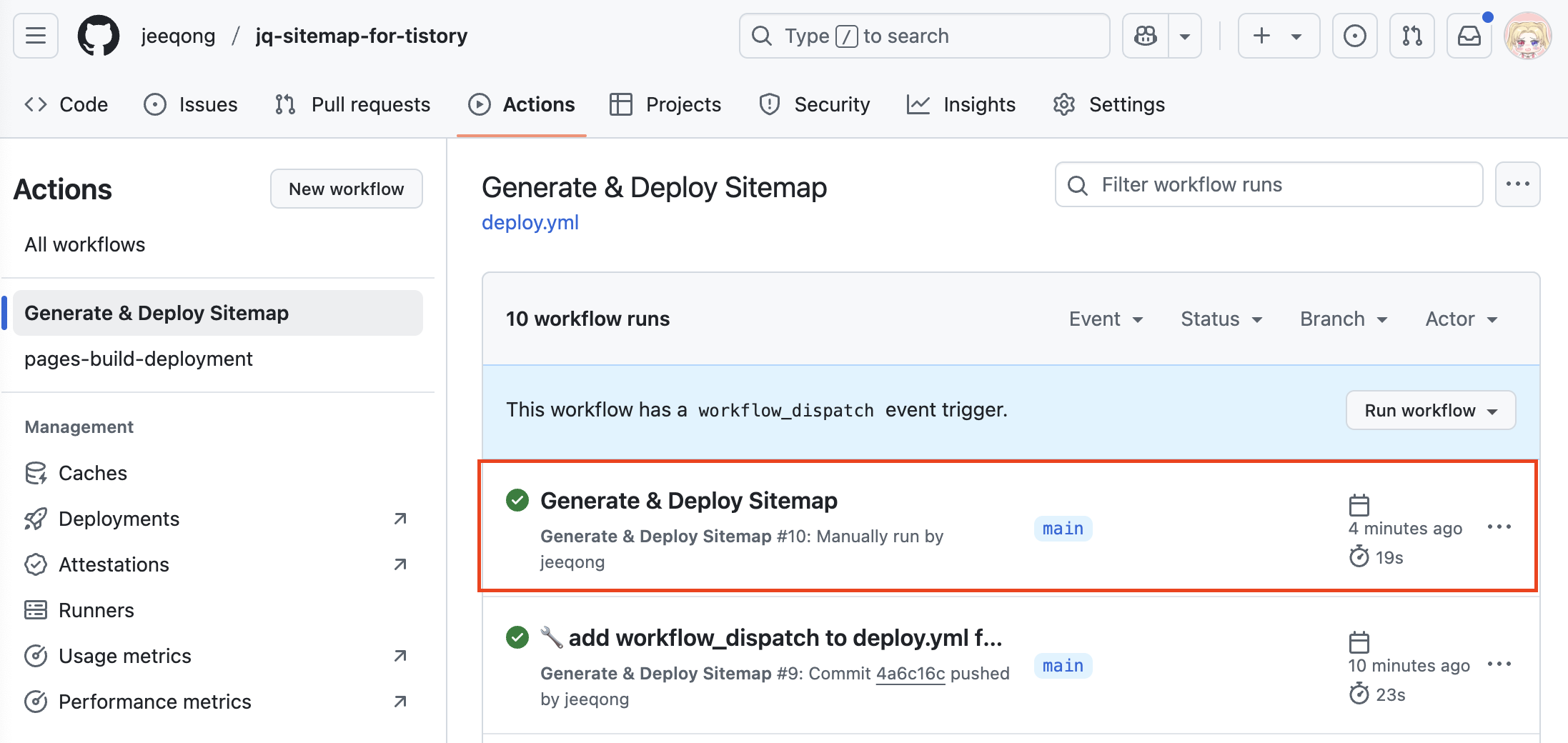 | JQ Sitemap - Github Actions 탭에서 워크플로우 성공/실패 확인 방법 (3) | 2025.04.30 |