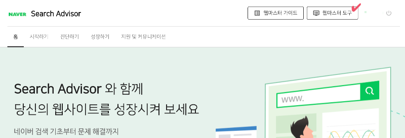 - 로그인 후, 헤더 메뉴에서 [웹마스터 도구] 클릭