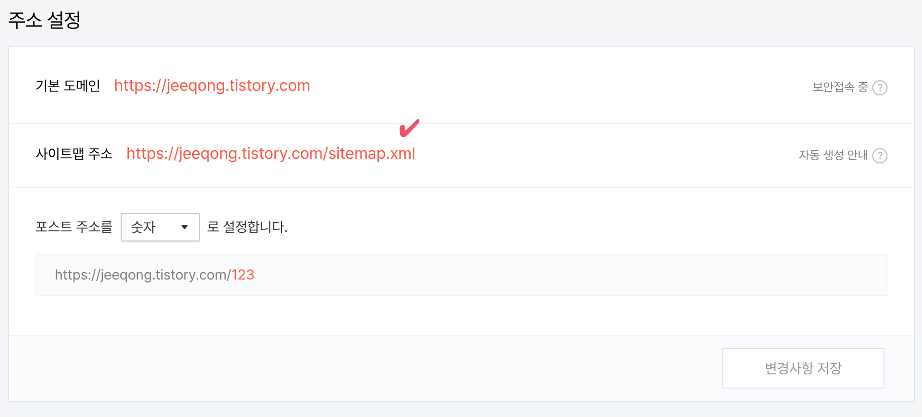 - 사이트맵 URL 입력 - 예시 : https://jeeqong.tistory.com/sitemap.xml