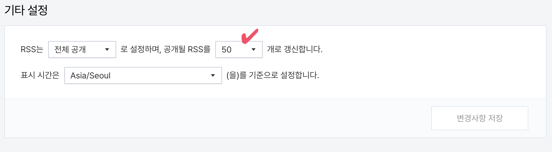 - 공개될 RSS 개수를 최대 개수인 50개로 설정합니다